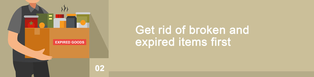 If you're still having a hard time deciding where to start, begin with something easy. Get rid of any broken or expired items, especially hair, makeup, and other cosmetic products, old prescriptions, and medicines. The same goes for any food or canned goods in your pantry that are already past their expiration date.
